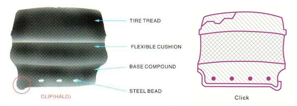 لچکدار ربڑ کا مرکب معیاری ٹھوس ٹائر کے مقابلے میں ہموار سواری کو یقینی بناتا ہے۔